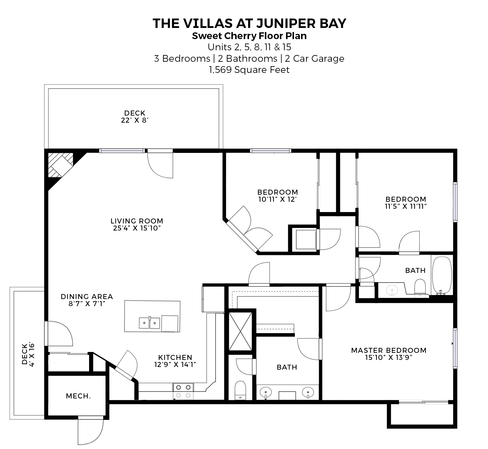 - 1,265-1,559 square foot units with decks, garages and fireplaces
